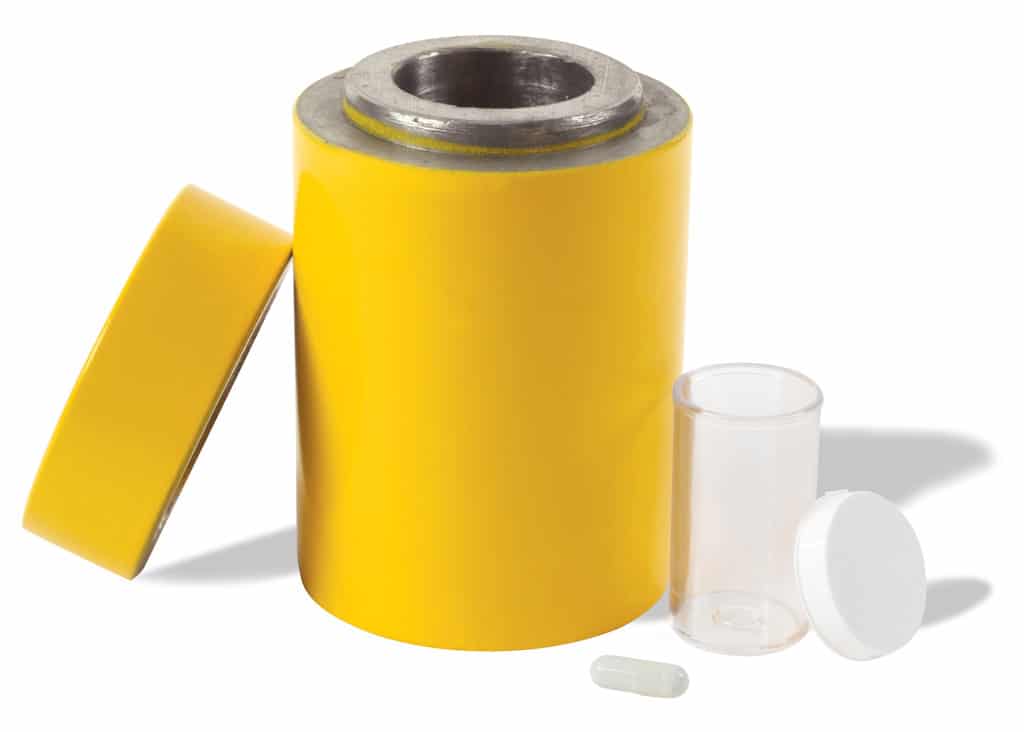 La capsule referme la quantité nécessaire d’iode-131, dosée en fonction de la date prévue du traitement. L’activité spécifique de l’iode-131 est libre d’entraîneur. Note: l’activité minimum offerte est de 111 MBq (3 mCi) par capsule et l’activité maximum est de 7400 MBq (200 mCi) par capsule.